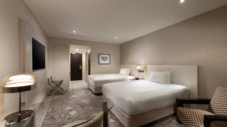Guests can work out at the state-of-the-art fitness centre, with glimpses of Darwin Harbour and Parliament House, or relax by the rooftop pool offering city views. There is a 24-hour business centre, tour desk and an on-site beauty salon, further elevating it among top hotels in Australia.