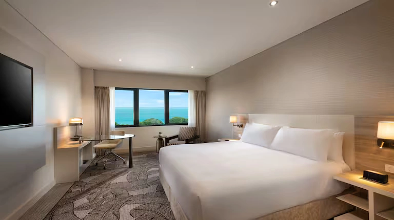 The spacious rooms at Hilton Darwin feature modern décor and local Aboriginal artworks. Each room includes a minibar, cable TV and air conditioning. All private bathrooms have a bathtub. Some rooms offer access to the Executive Lounge, which provides free continental breakfast—perfect for those seeking premium accommodation in Australia.
